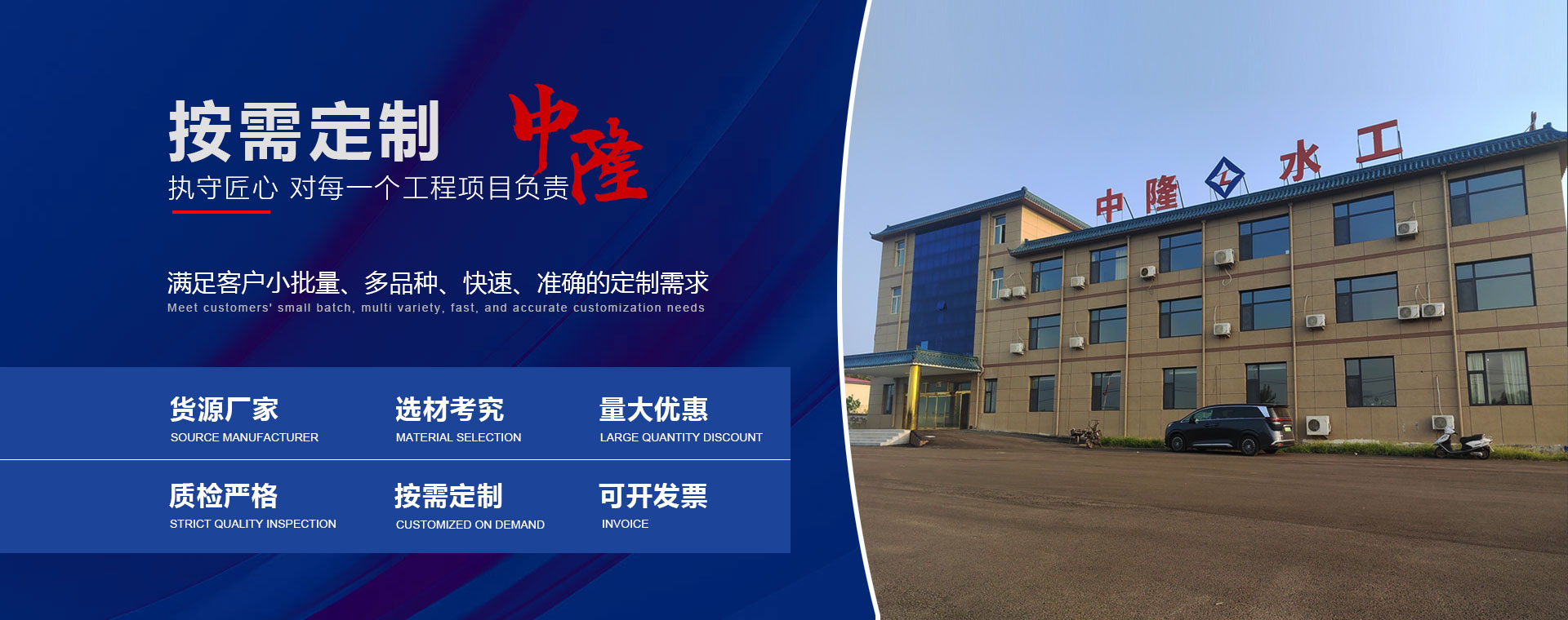 邢臺市中隆水工設(shè)備有限公司位于新河縣九龍工業(yè)園區(qū)占地面積20000平方米。北鄰北環(huán)路、西鄰西環(huán)路,交通便利。 公司堅(jiān)持,依法經(jīng)營,誠信服務(wù)的宗旨,尋求合作共創(chuàng)輝煌。融科研制造銷售安裝,服務(wù)為一體的水工設(shè)備專業(yè)制造公司。優(yōu)質(zhì)制造設(shè)備,規(guī)格齊全,產(chǎn)品檢測體系完整,各項(xiàng)技術(shù)指標(biāo)均達(dá)到行業(yè)標(biāo)準(zhǔn),給客戶提供無憂合作! 主要產(chǎn)品有:   &n···